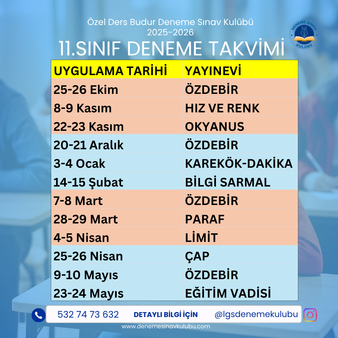 Deneme takvimimizi takip ederek en geç bir hafta önceden kayıt olmayı unutmayın!